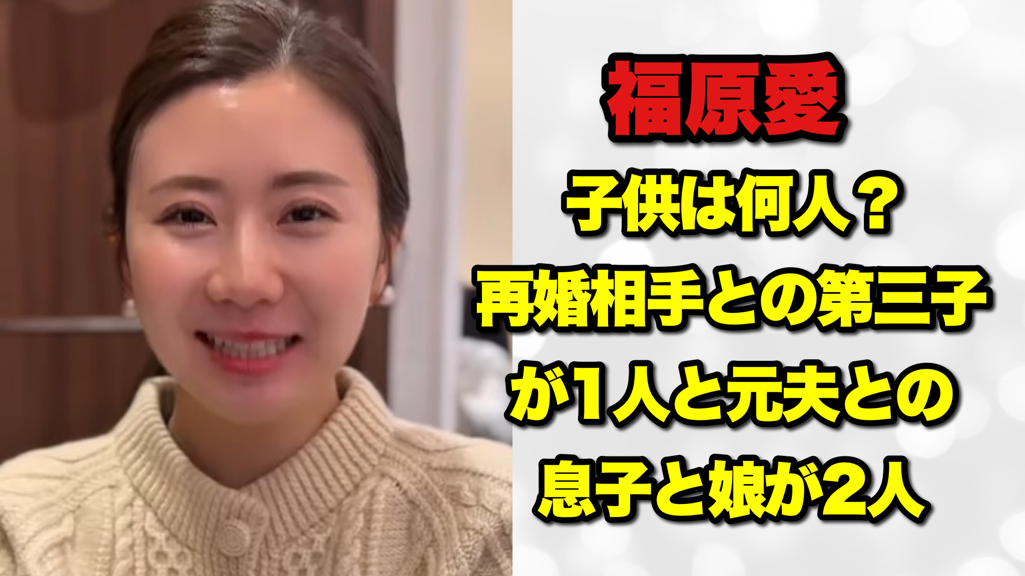 特に気になるのが、「子供は何人いるの?」「元夫との子供はどうなったの?」「再婚相手との子供は?」といった家族事情ではないでしょうか。