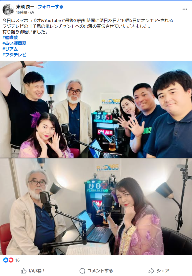 他にも本名である東瀬良一の名前でFacebookの投稿を見つけました。これはもう遅咲駿=東瀬良一はご本人で確定ですね。