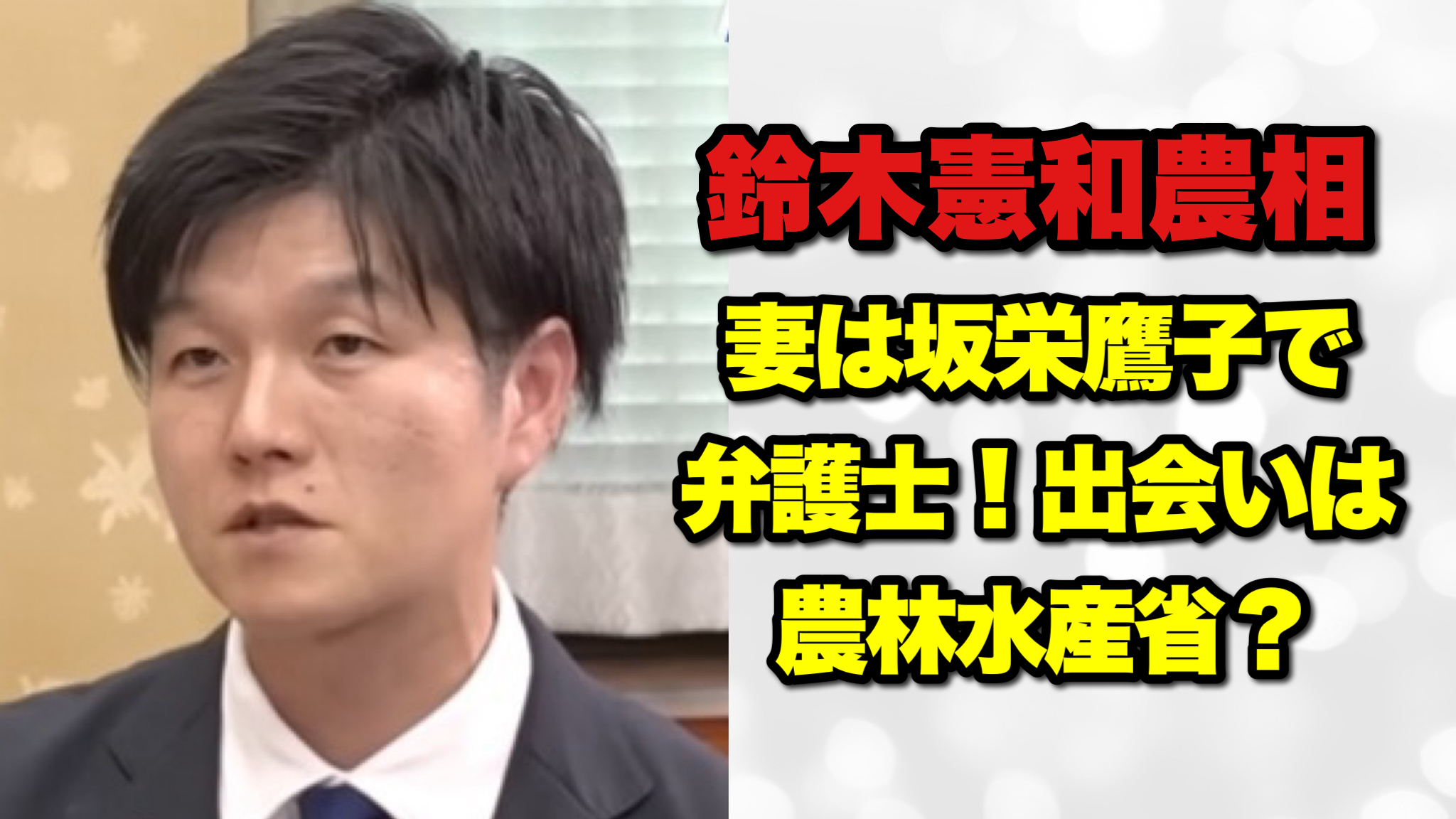 【画像】鈴木憲和農水大臣の奥さん(嫁)の名前は坂栄鷹子で職業は弁護士
