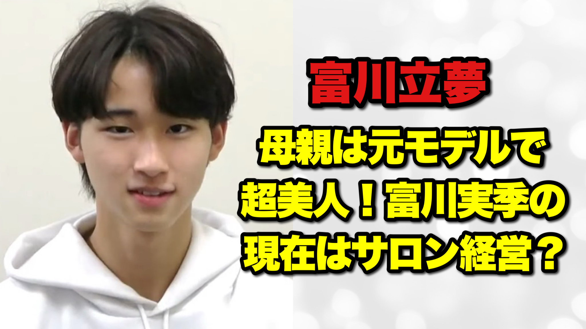 この記事では、富川立夢さんのプロフィールや経歴をはじめ、美人すぎる母親の現在の活動、さらに父・富川悠太さんの意外な転身まで、わかりやすくまとめてご紹介します。