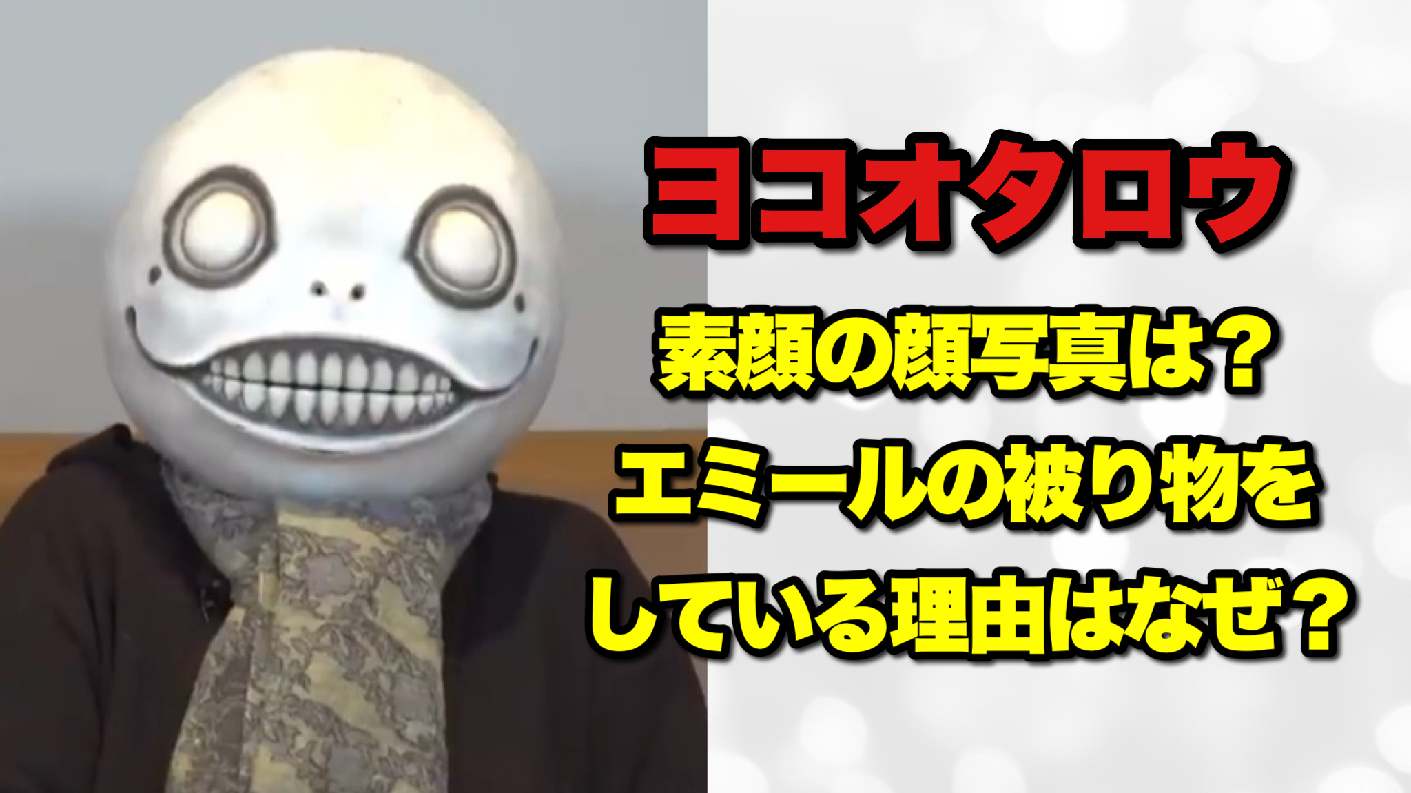 この記事では、ヨコオタロウさんのプロフィールや経歴をはじめ、エミールの被り物をしている理由、そしてその元ネタとなった『NieR』シリーズとの関係まで、わかりやすく解説していきます。